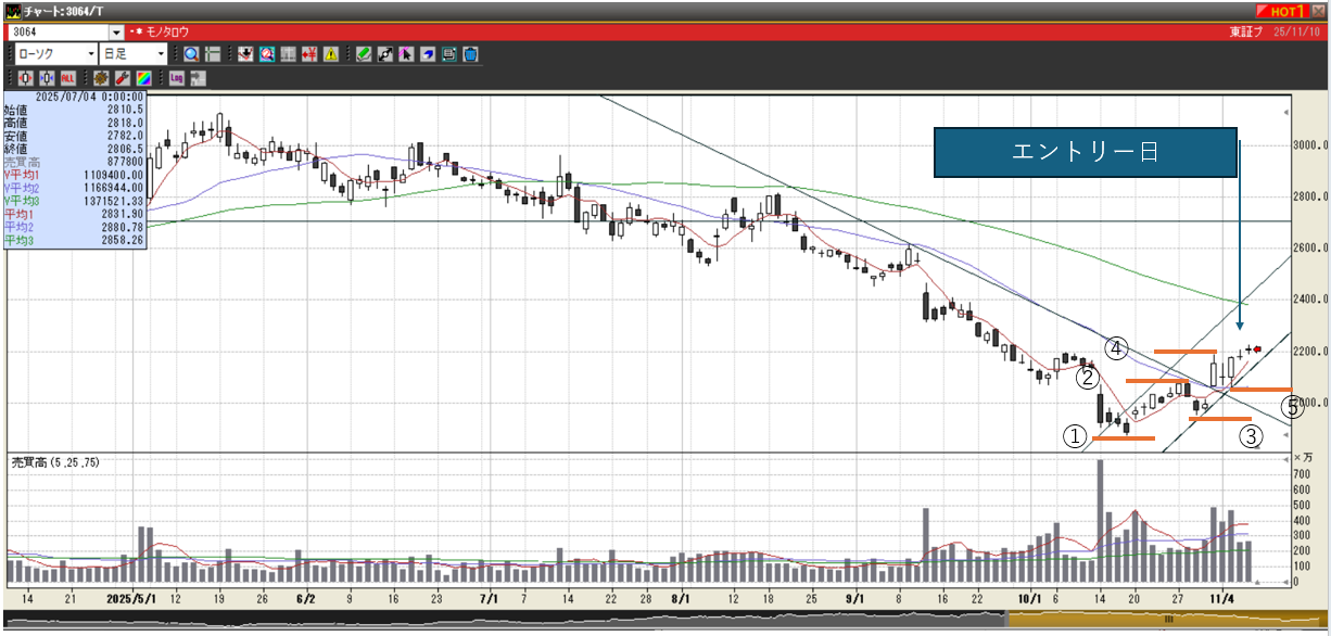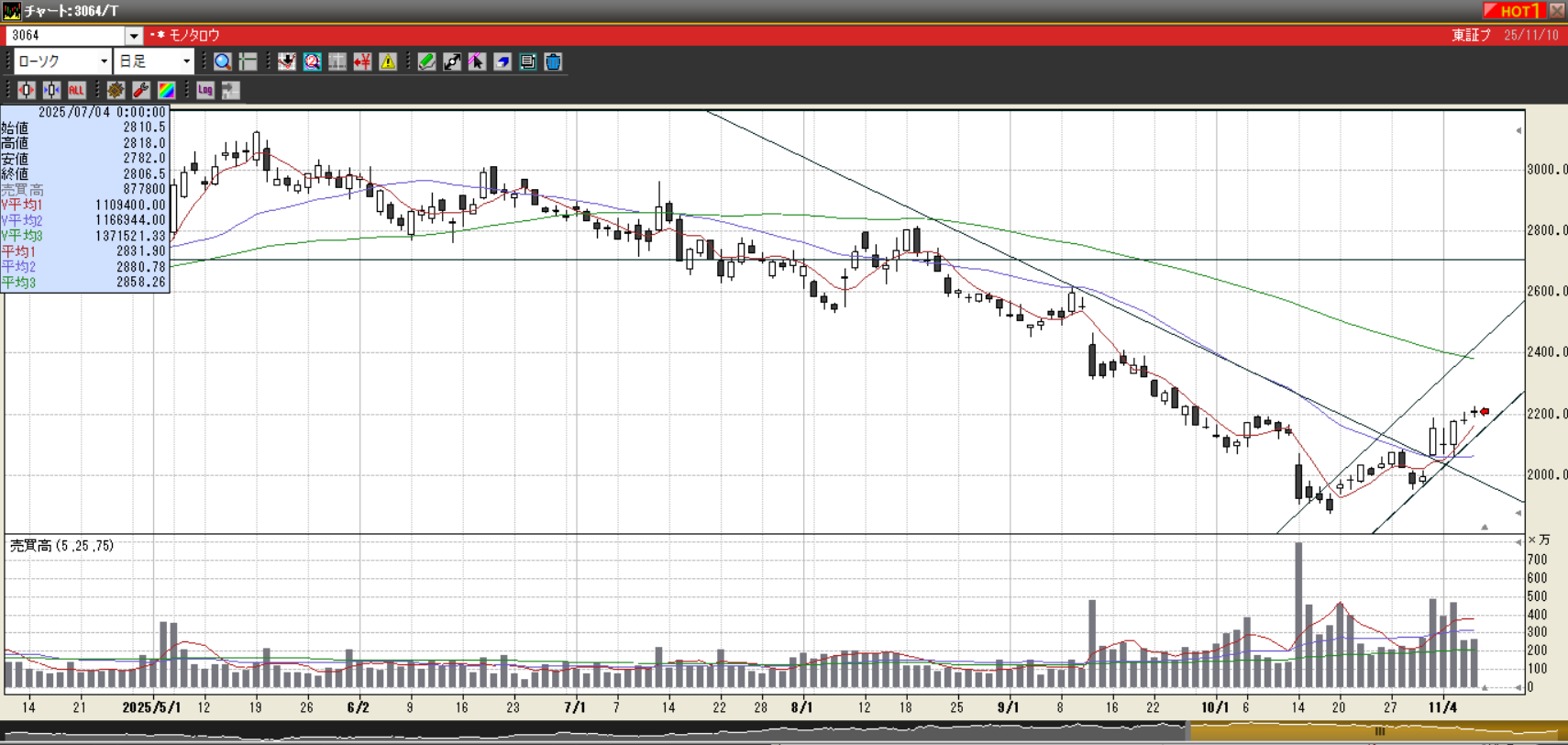 モノタロウ株 2025年11月6日 2188.5円を超えたのでエントリーしました。